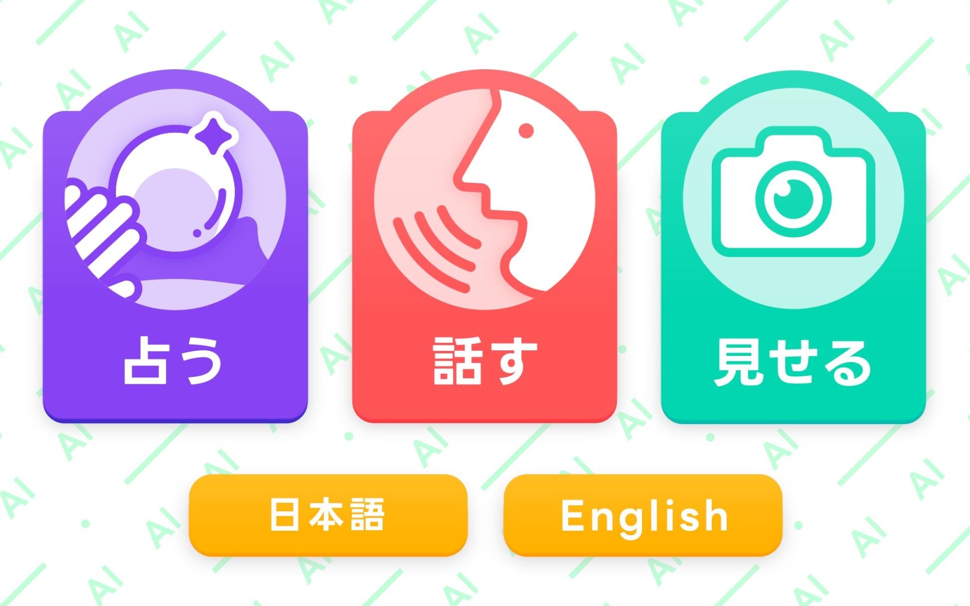 アップデート版の「AI茨ひより」では、誰でもコミュニケーションがとりやすいように、新たに画像認識の機能を追加し「占う」「見せる」などのアイコンをタップすると、AI茨ひよりがラッキーアイテム・ラッキースポットを教えてくれたり、来場者の持ち物のレビューをしてくれるなど、対話以外でのコミュニケーションも可能になりました。その他、これまで展開してきた音声対話機能(日本語・英語)も搭載しています。そしてアプリケーションを機能が一目で分かりやすいデザインに一新して、より多くの方が簡単に利用しやすいサービス設計になりました。