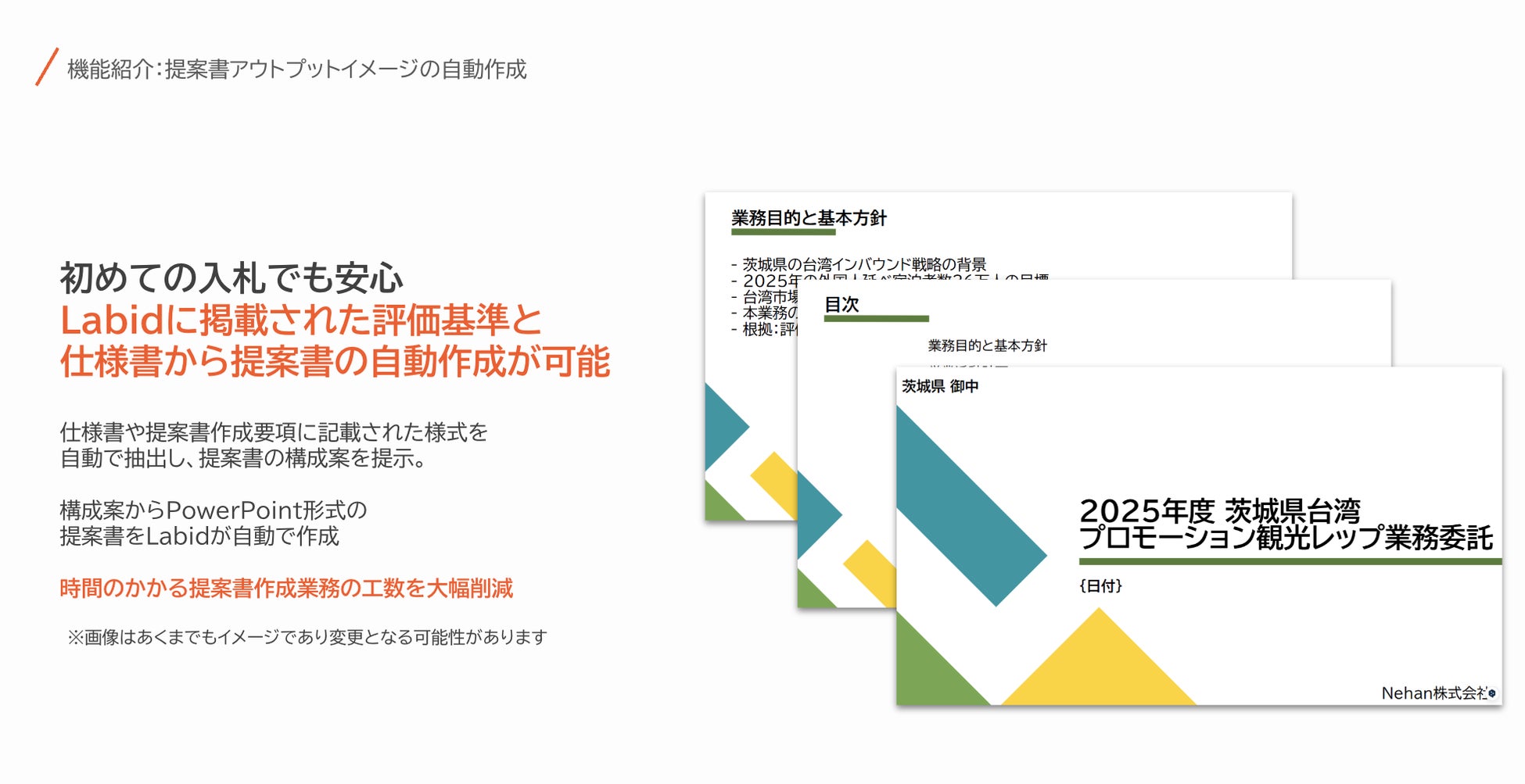 Nehan株式会社(本社:東京都新宿区、代表取締役:鶴巻百門、木嶋諄)は、AI入札プラットフォーム「Labid」を提供開始したことをお知らせいたします。