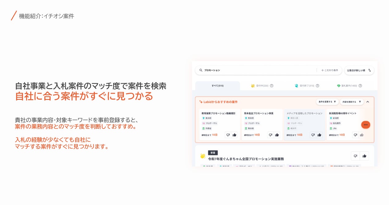 イチオシ案件:事業内容と入札案件の概要のマッチ度で案件を検索