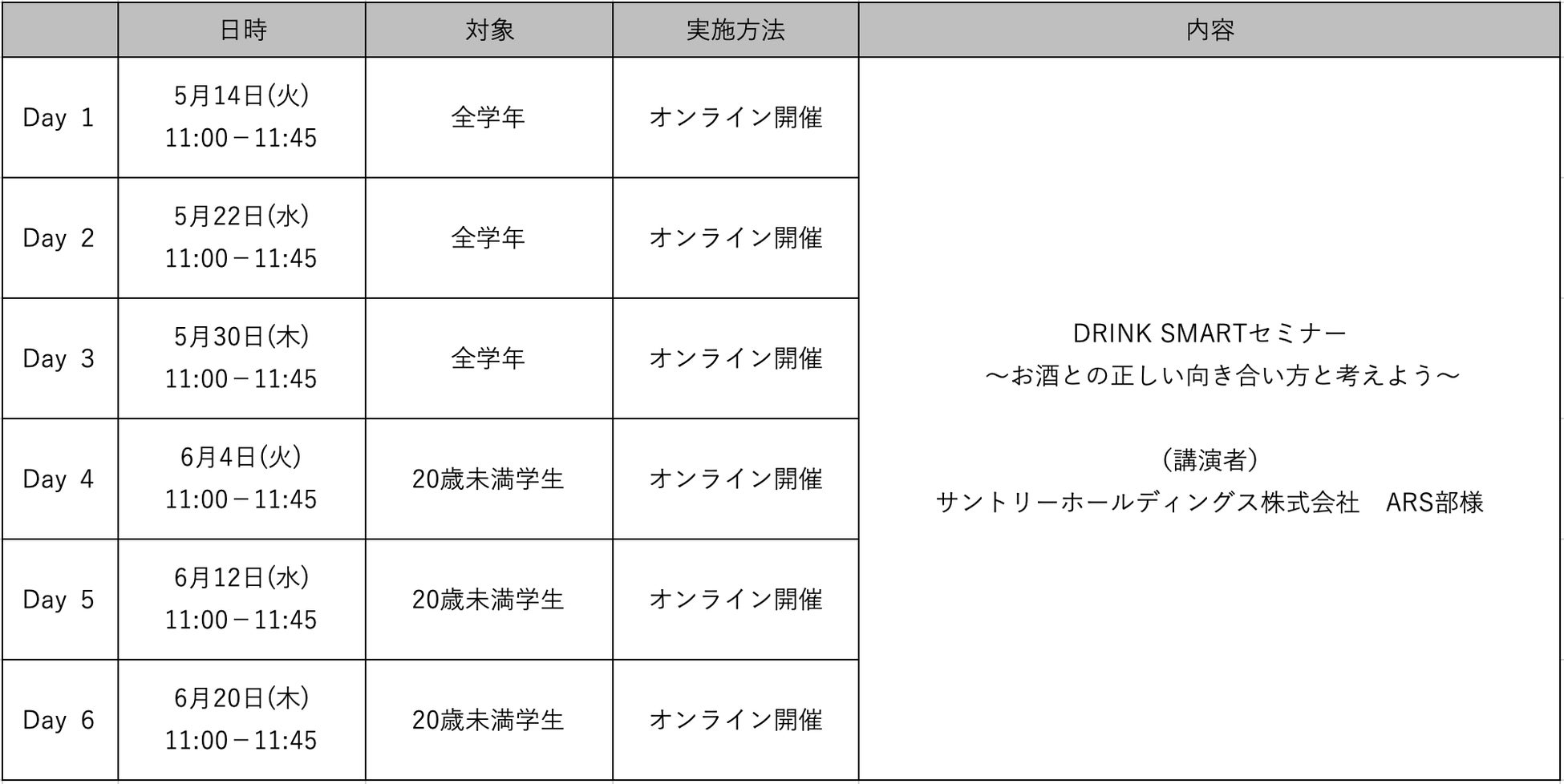 セミナー名 『DRINK SMARTセミナー 〜お酒との正しい付き合い方を考えよう〜』