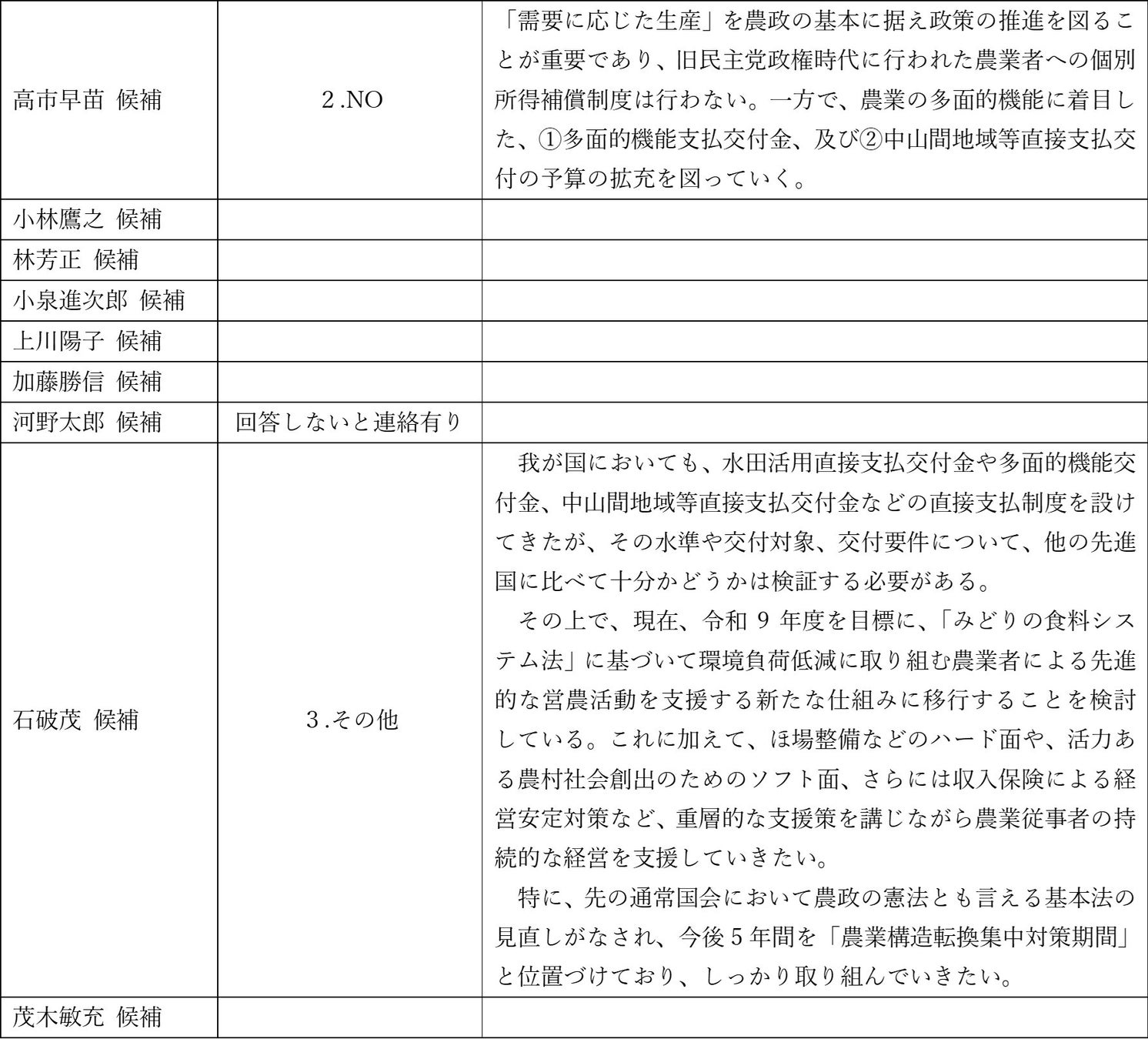 自由民主党総裁選挙立候補者への公開質問状に対する回答