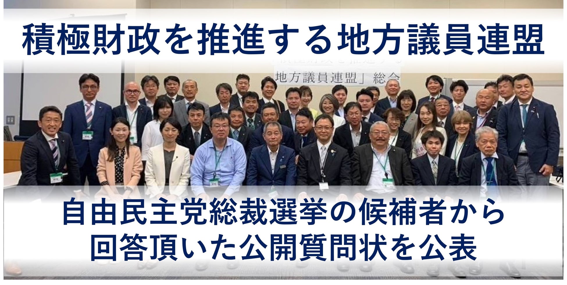 国民の生活を豊かにし、経済を復活させるために、政府による消費税廃止や大規模財政出動を訴えている、超党派の議員連盟「積極財政を推進する地方議員連盟(共同代表:広瀬大海・新潟県佐渡市議会議員、会員数163名)」は、令和6年9月27日(金)に投開票される自由民主党総裁選挙の9名の候補者全員に公開質問状を提出し、現時点で2名の候補から御回答頂きましたので、別紙のとおり公表致します。※今後、公開質問状に回答頂いた際は当議連HP・SNS内で公表致します。