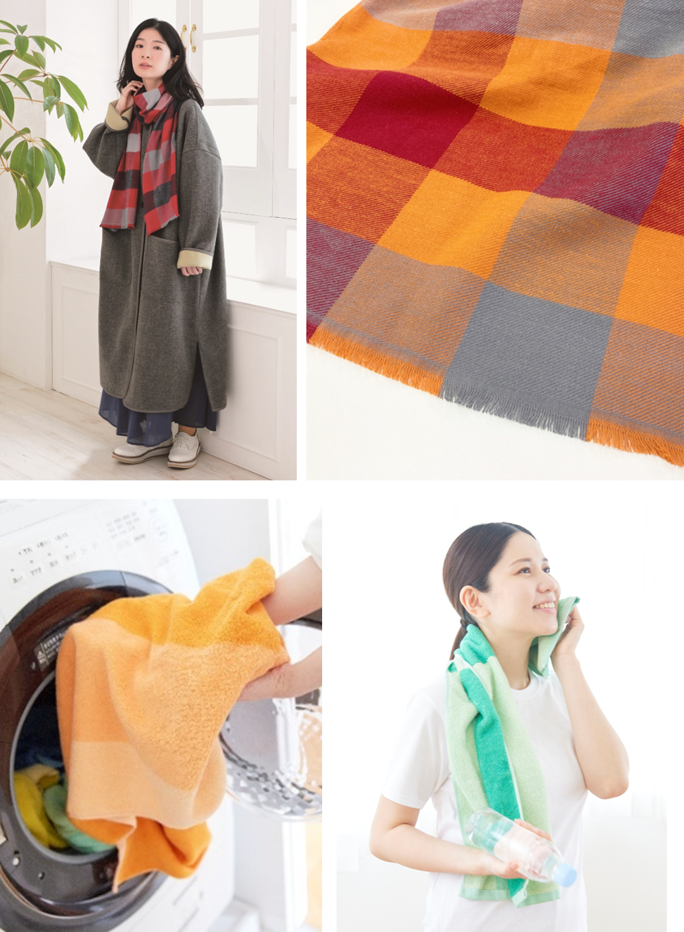 今治タオルブランド認定の秋冬マフラーや色落ち・色褪せ・変色を防ぐ今治タオル「綺麗長持ち」を展示