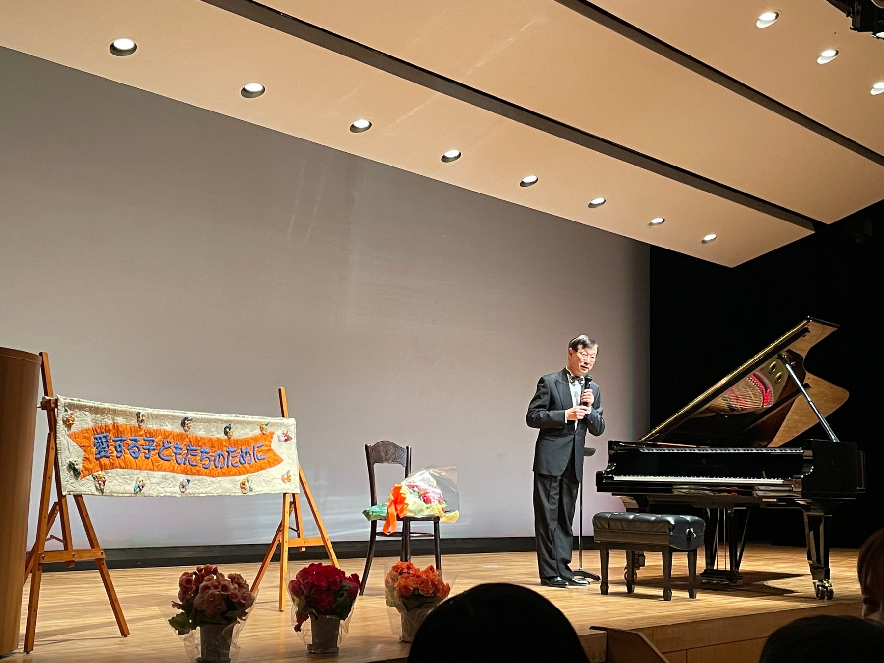 ピアノの演奏に先立って、スマイルオブキッズの活動紹介を行います。