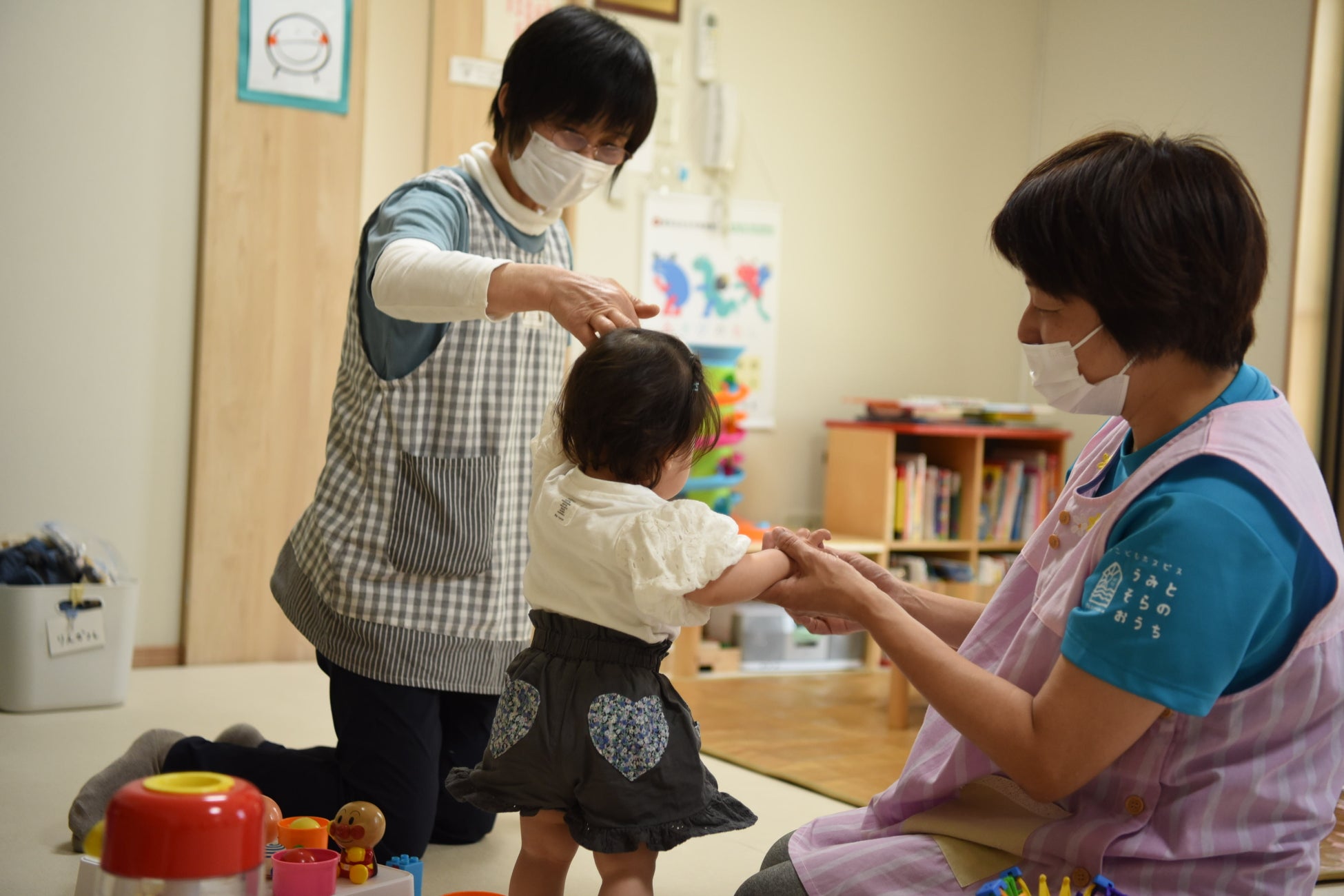 面会や付き添いに向かった親御さんの帰りを待つきょうだい児に、保育士がひとりひとりに寄り添って楽しい時間を過ごしています。