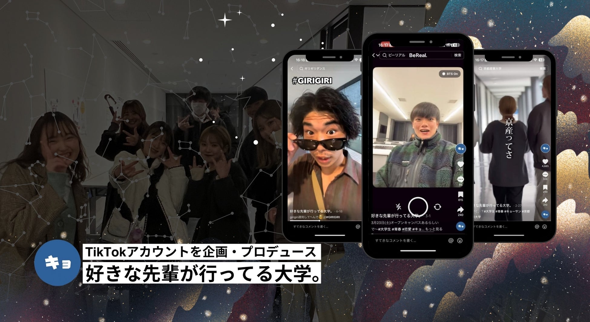 大学アカウントで今、最も注目を浴びている京都産業大学のTikTokアカウントをプロデュース!「好きな先輩が行ってる大学。」が話題に!