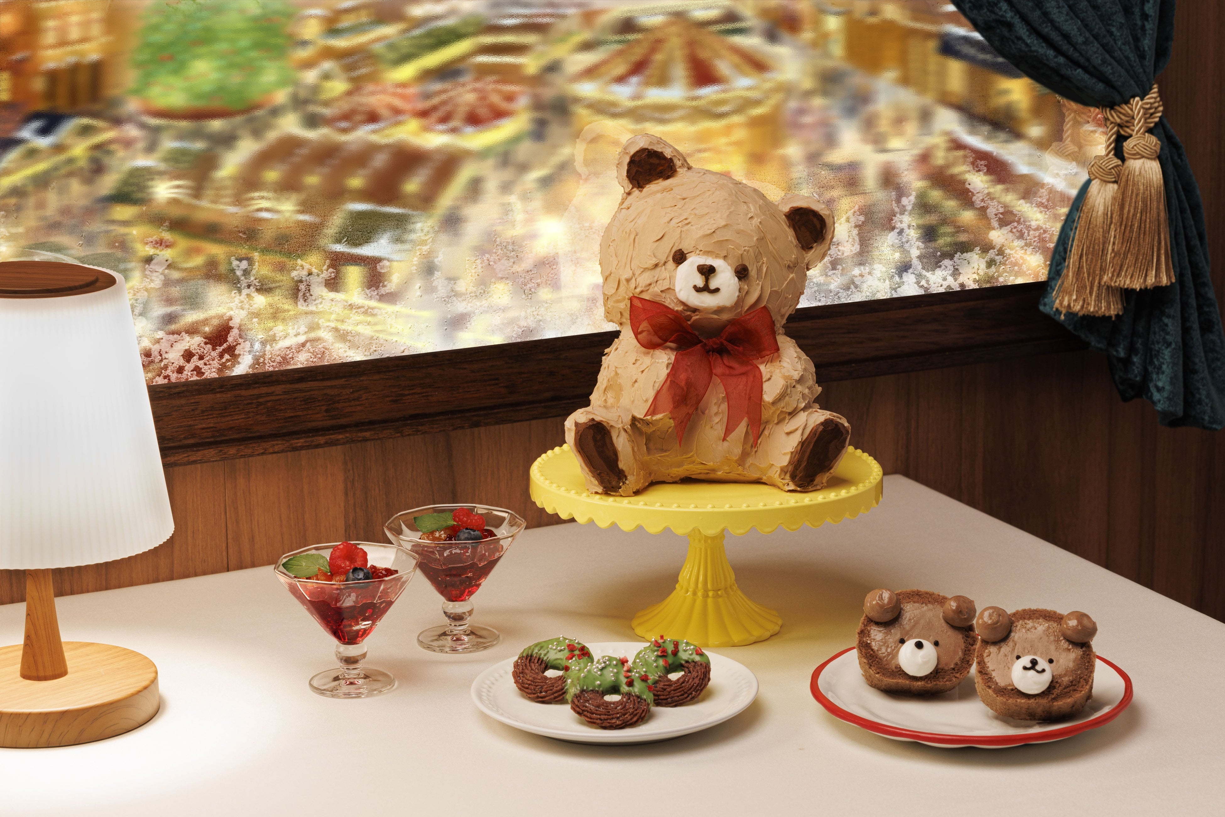 サンタさんからの贈り物として可愛らしいテディベアをロールケーキに仕立てました。シェフが皆さんの笑顔を思い浮かべながら、チョコレートのロールケーキに、一つ一つ手書きで愛らしい顔を描きました。