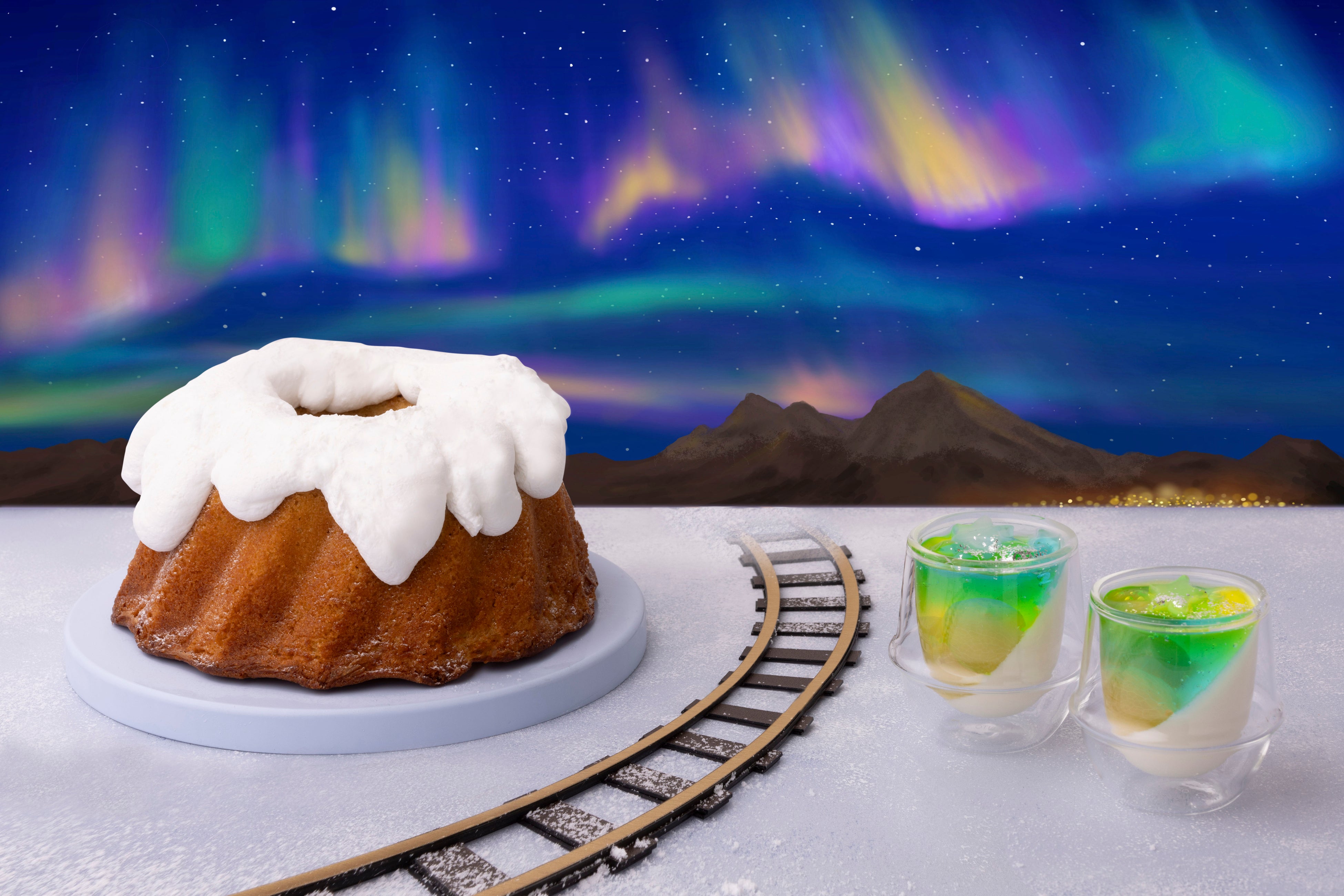 今回は、毎冬ホテルのロビーに展示している「ヒルトン東京ベイ・クリスマス・トレイン」のジオラマからインスパイアされたデザートビュッフェです。華やかなヨーロッパの街並みや美しい雪山などのジオラマの世界観を大切にしながら、ビュッフェ台には、クリスマスマーケットが立ち並ぶ賑やかな出発駅エリア、美しいオーロラの中をトレインが走り抜ける情景を表現したエリア、目的地であるサンタクロースが住む田舎町クリスマスタウン駅エリアが登場します。トレインとともに、クリスマスのヨーロッパを旅する気分をお楽しみください。