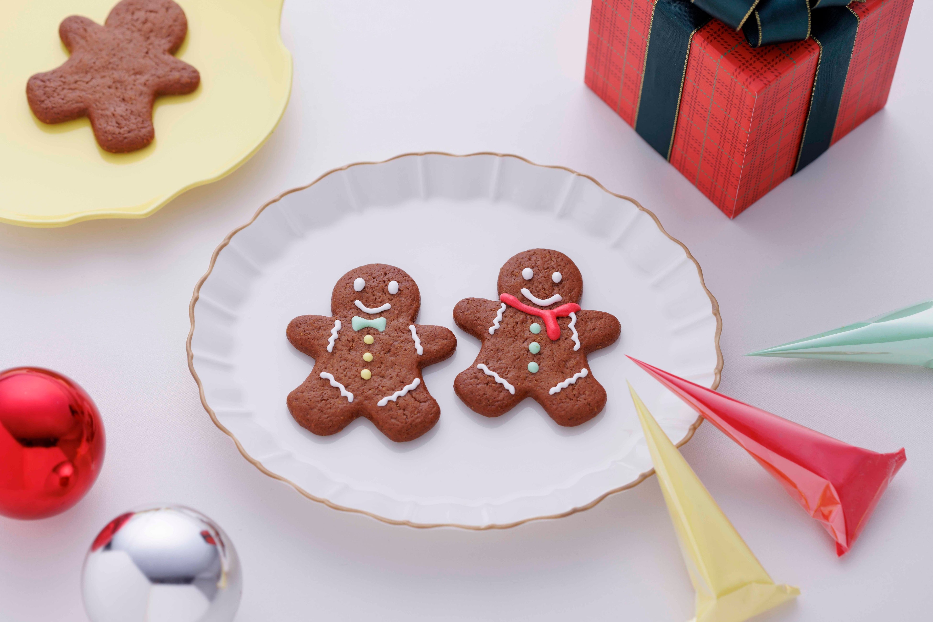 ジンジャーパウダーやシナモンパウダーを混ぜた生地にはちみつで甘みを加えた素朴な味わいが魅力のヒルトン東京ベイの特製ジンジャーブレッドクッキーです。ビュッフェ台にご用意した赤、白、緑、黄色、ピンクの5色のアイシングペンでお好みのジンジャーブレッドマンを描ける体験スペースをご用意しました。オリジナルのジンジャーブレッドマンづくりをお楽しみください。この特製生地で仕上げたジンジャーブレッドハウスが11月7日(火)からロビーに登場します。