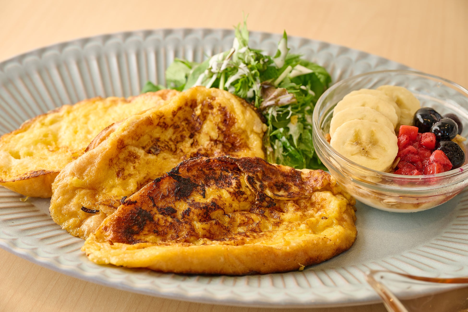 厚切りにしたバゲットを卵たっぷりのアパレイユにじっくり漬け込み、弱火でじっくり焼き上げました。極限まで漬け込んだフレンチトーストは、中までふわとろに仕上げた極上の一品です。