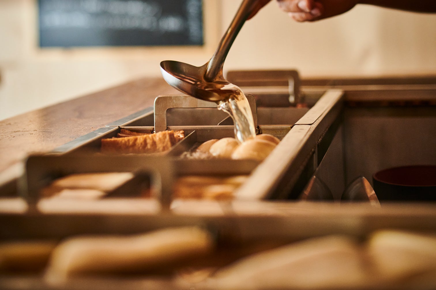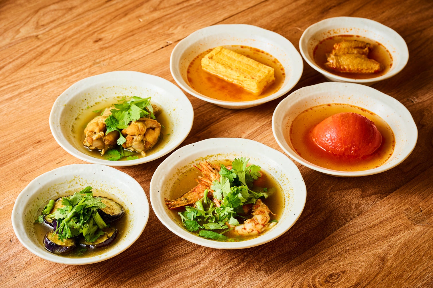 「おでん」というと冬限定メニューであるというイメージがありますが、「究極の鱧出汁」を使用しているため、季節に関係なく美味しいおでんを提供できます。夏には夏限定の鱧出汁タイカレーおでんや辛おでんもご用意しております。ちょいおでんで新体験を味わっていただければと思います。