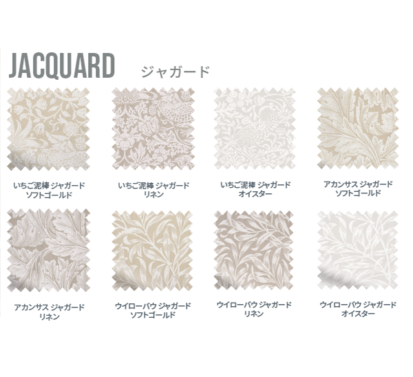 ジャガード生地は「ソフトゴールド」「リネン」「オイスター」の3色展開でご用意しています。