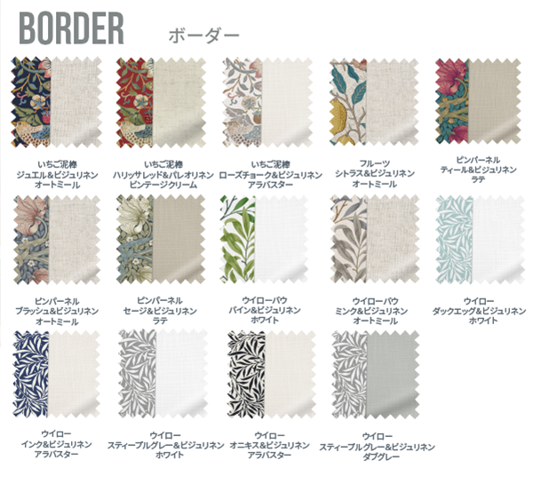 人気のモリスの柄をボーダーデザインにし、異なる生地と組み合わせました。