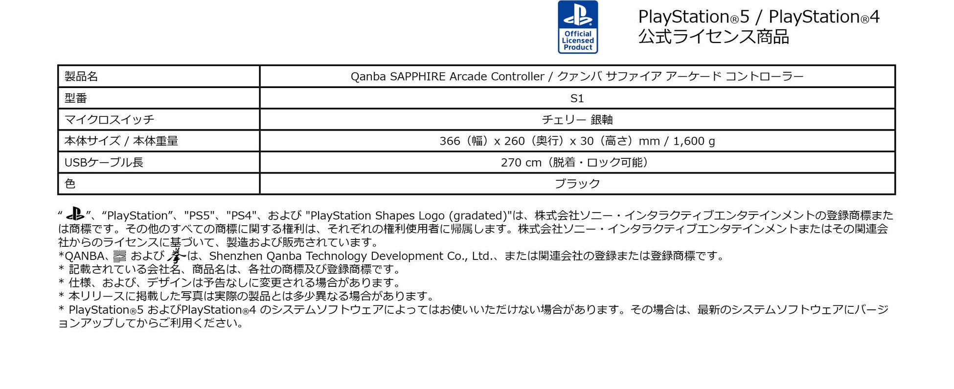 Qanba(クァンバ)、PlayStation®5 / PlayStation®4 / PC 正式対応 SAPPHIRE(サファイア)アーケード コントローラー 5/9 試遊体験会・プレオーダー開始