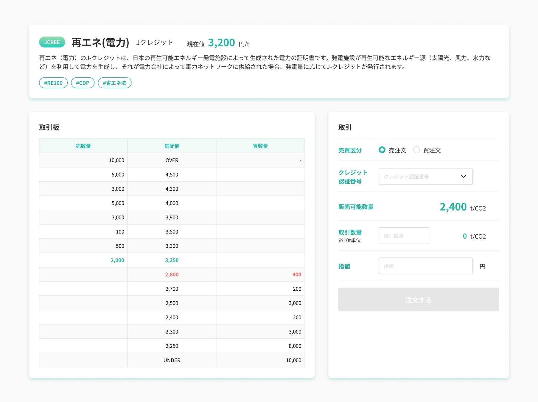 日本カーボンクレジット取引所は、WEB上で手軽に売買が完結するカーボンクレジットの取引所です。