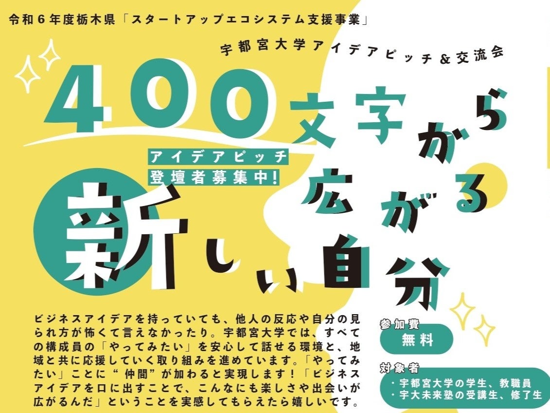 【宇都宮大学】「やってみたい」気持ちを伝えるアイデアピッチ会を開催します!対象者は宇大関係者