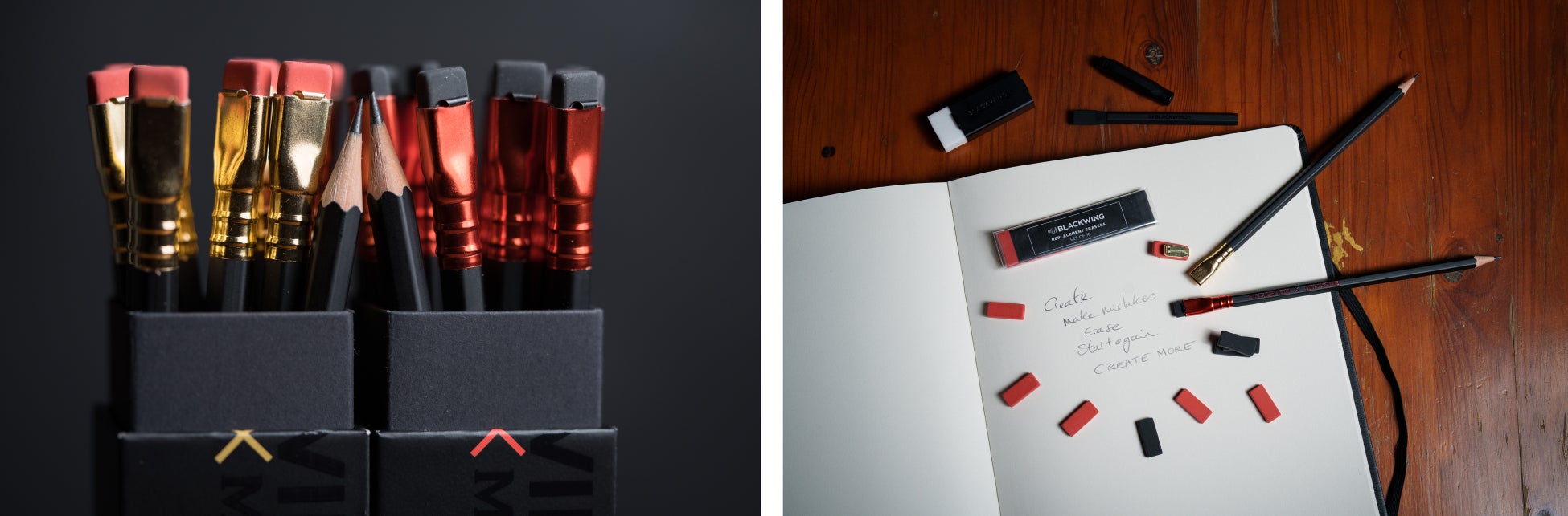 ブラックウィングは1930年代から多くの歴史的な芸術家、作家、思想家たちのクリエイティブ道具として選ばれ、鉛筆の卓越した書き心地として知られるブランドです。モレスキンと似通った背景を持つブラックウィングは、1990年代後半に製造中止したあとの2007年に復活し、再び世に送り出され、多くの愛用者によって文化の一つへと進化しました。
