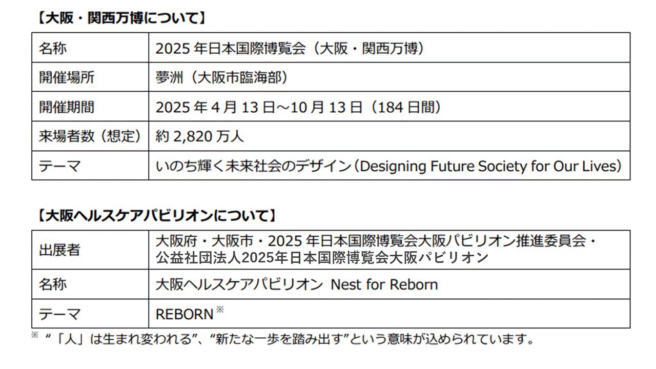 一般社団法人日本MA-T工業会(代表理事:川端克宜)は、大阪・関西万博『大阪ヘルスケアパビリオン』について、『ミライのヘルスケア』ゾーンに出展いたします。大阪ヘルスケアパビリオンは「REBORN」をテーマに、「いのち」や「健康」の観点から、子どもから大人までが楽しみながら、ミライの大阪の可能性を感じることができる展示体験を提供します。