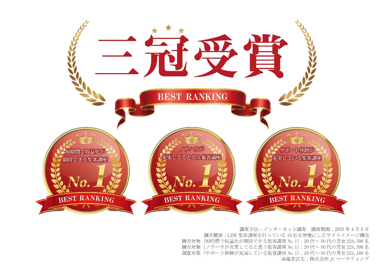 (株)JCマーケティングがNo.1調査を行った結果、株式会社SHIRAHAの「LINE集客講座」で3冠を獲得しました!