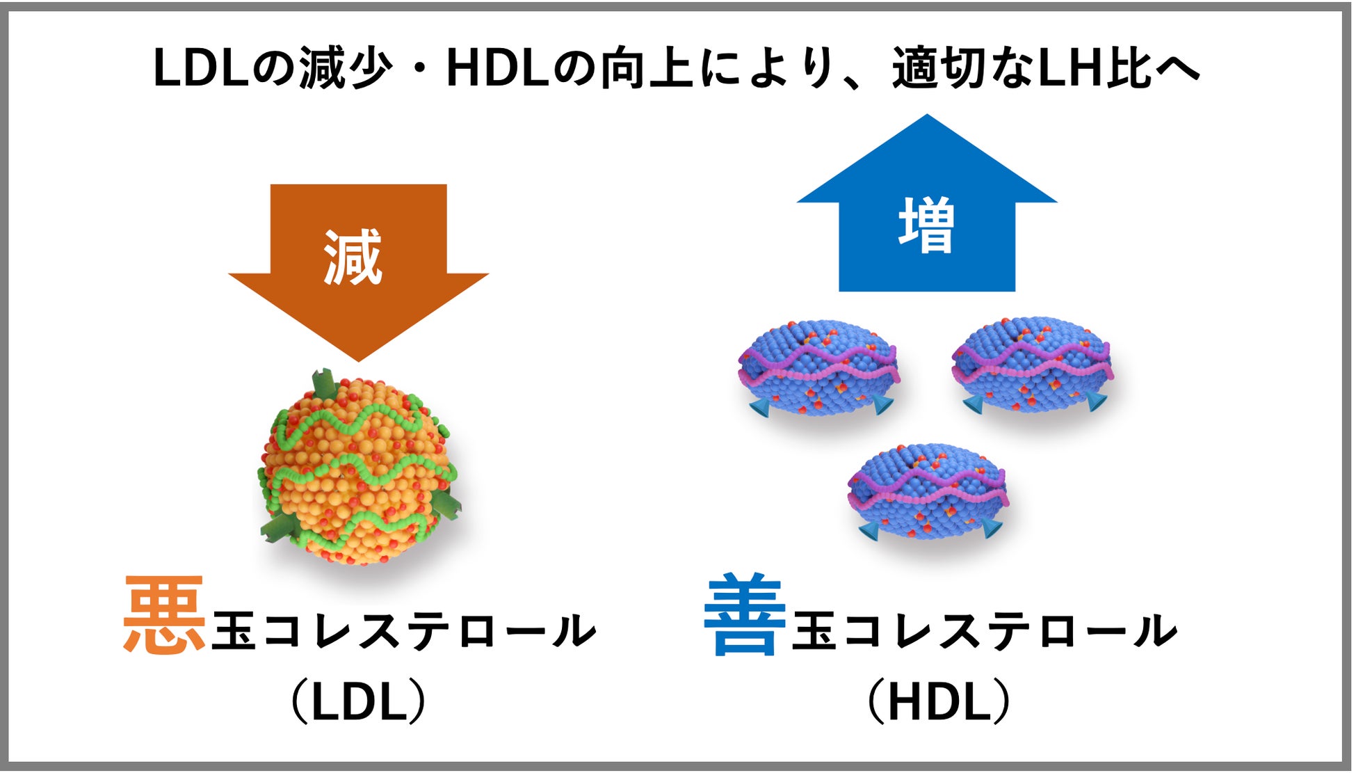 HDLコレステロール値が向上し、 LDL値が低下することで、LDL/HDL比が低下(改善)しました。