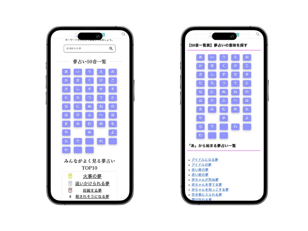 夢の意味をキーワード検索や50音一覧からスマートに探せる新機能を追加、より夢占いを身近で楽しめるものに。