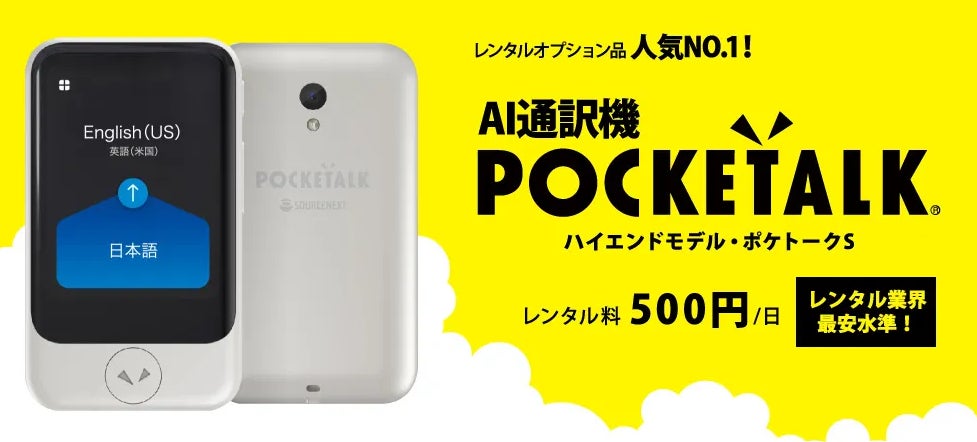 人気のAI翻訳機『ポケトークS』もWIFIとセットでお貸出し中です!