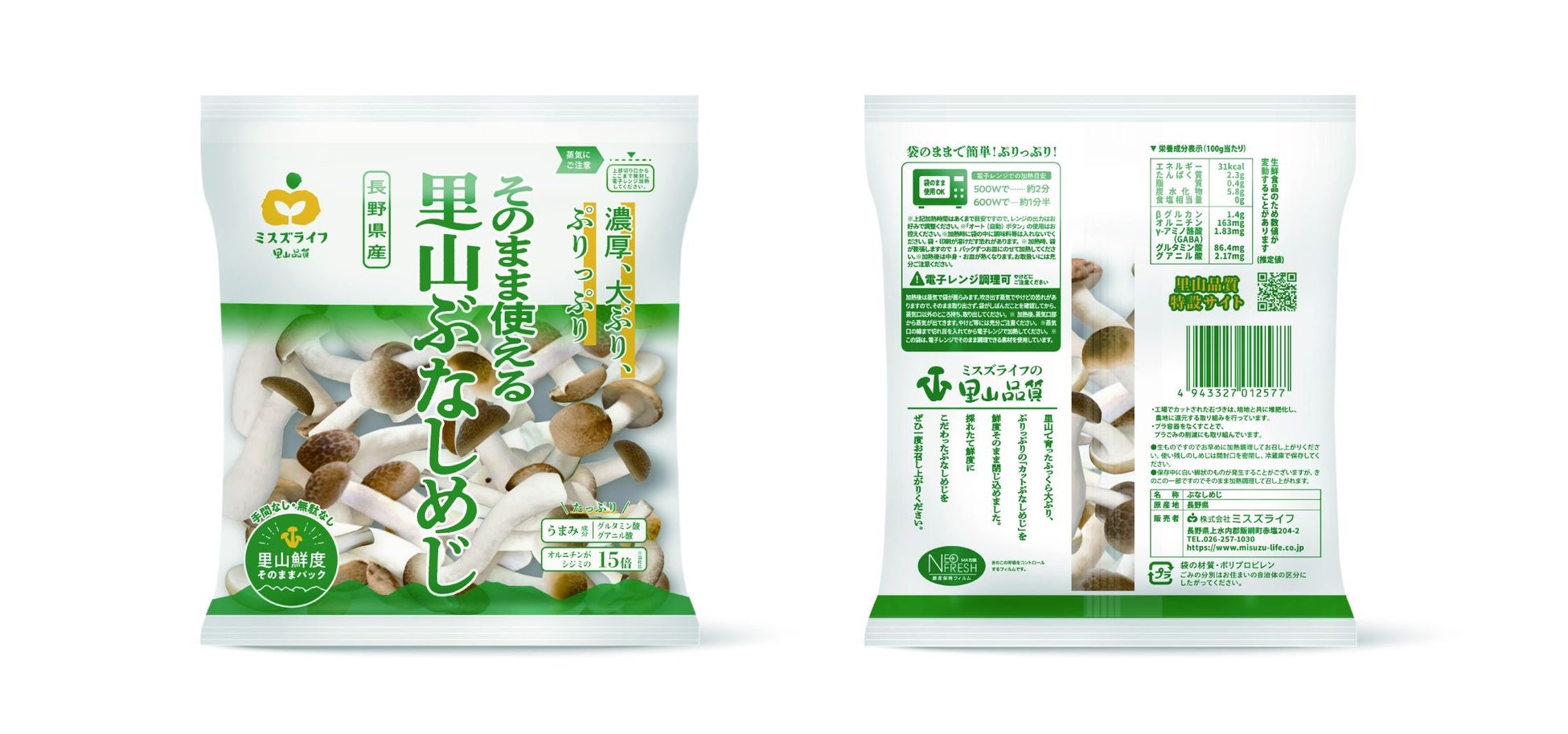 このたびのリブランディングに合わせて、商品名を『そのまま使えるぶなしめじ』から『そのまま使える里山ぶなしめじ』に名称を変更し、パッケージもリニューアルいたします。