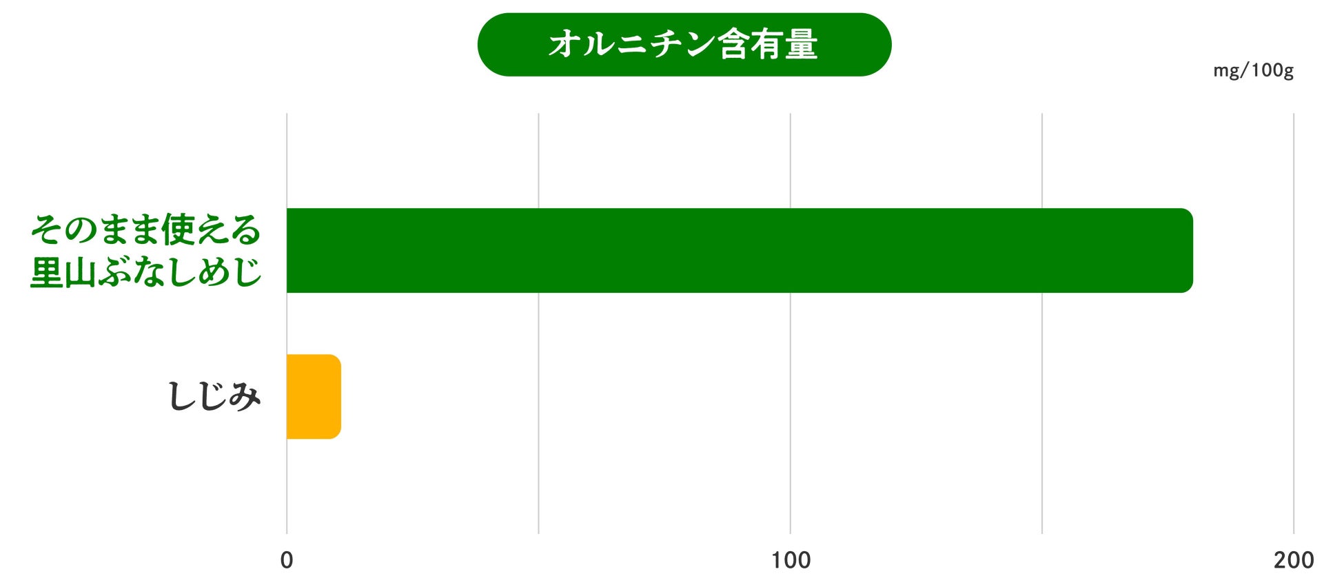 当社のカットぶなしめじには、「二日酔い」や「疲労回復」「睡眠改善」に働きかけるオルニチンが、しじみの約15倍含まれています(※)。スープに入れたり、炒め物の食材に一品追加したり、美味しくオルニチンを摂取するのに、「そのまま使える ぶなしめじ」は、最適な食材です。