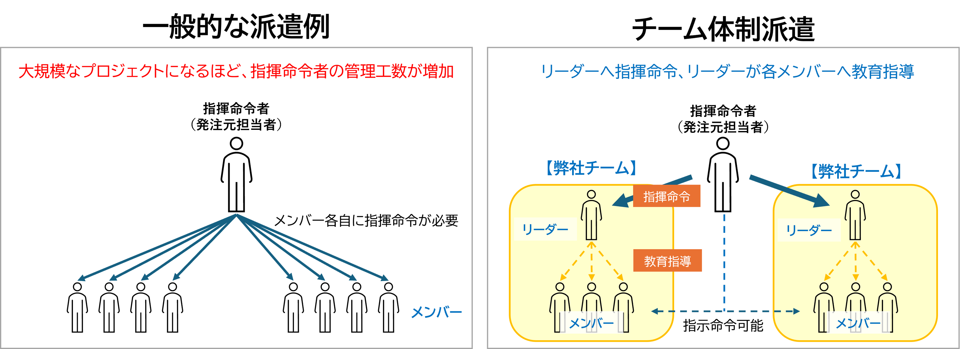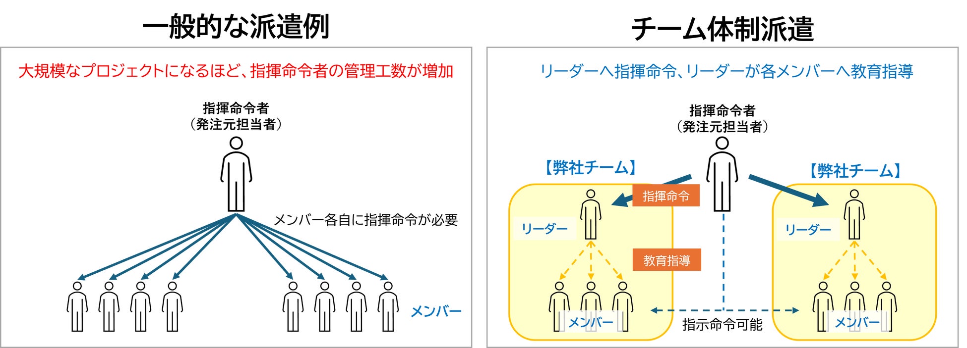 このような背景から、ソフトウェア開発における課題解消を目指し、チーム体制派遣サービスを開始します。