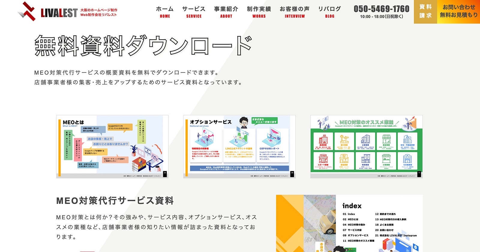【無料公開】株式会社LIVALESTのMEO対策代行サービスの資料をダウンロードできるページを公開しました。