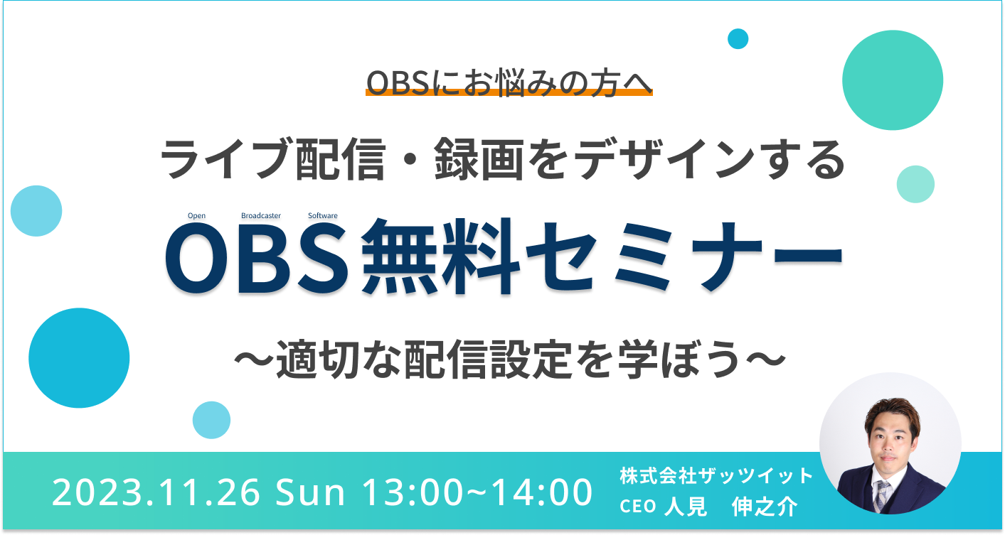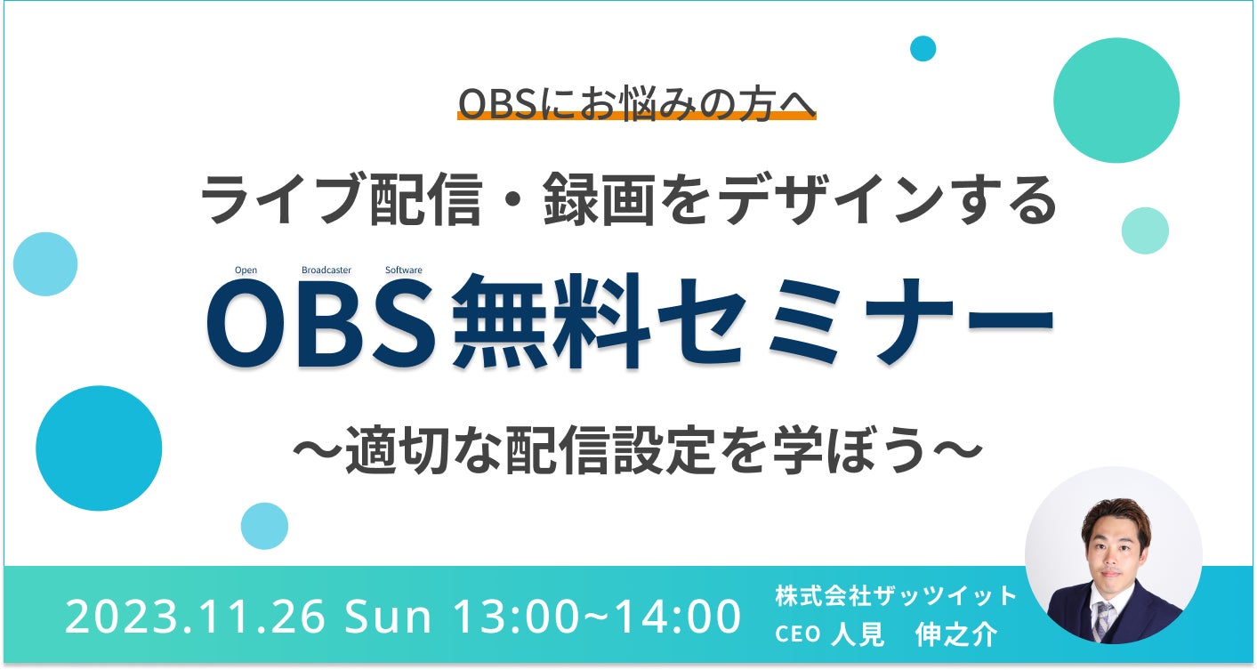 【無料セミナー】ライブ配信ソフト「OBS」の適切な配信設定を学ぼう!【11月26日(日) 13時~14時】