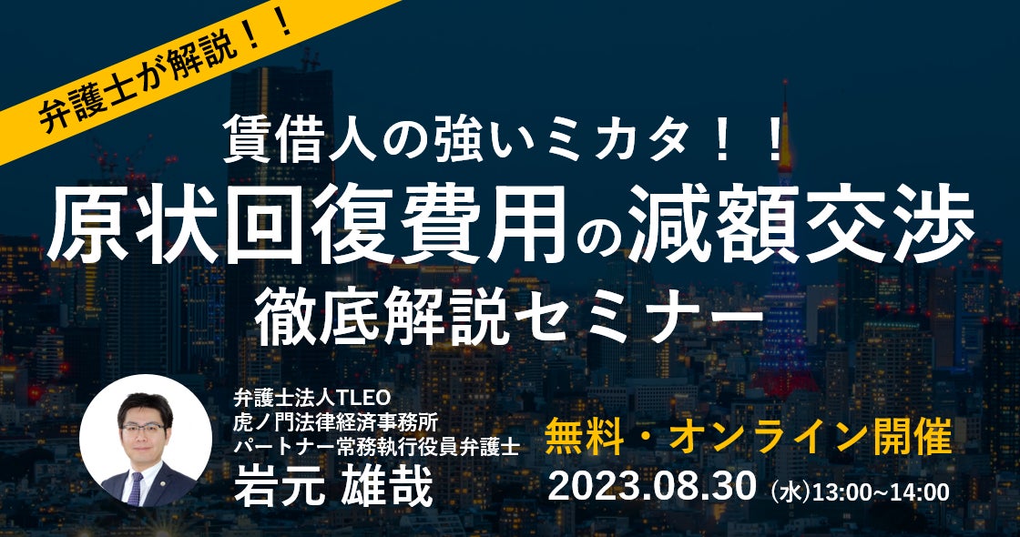 【弁護士による60分解説】無料オンライン開催「賃借人の強い味方! 原状回復費用の減額交渉に向けた戦略立案セミナー」