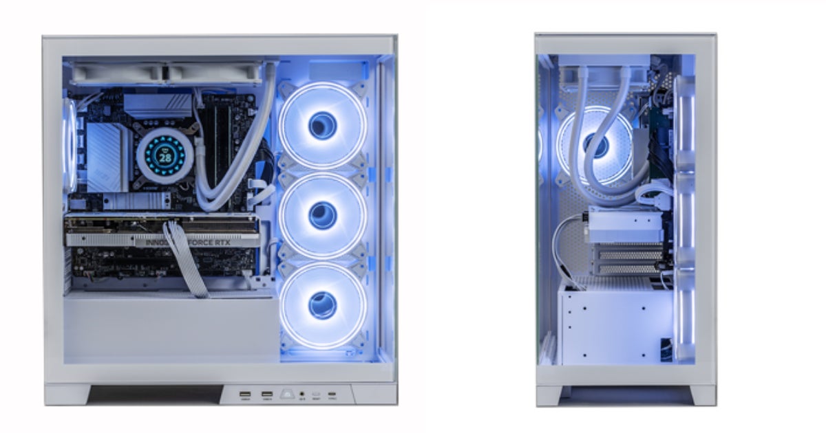 PCケースには、STORMからの最新ケース「鏡界(kyokai)」を採用しています。トレンドを押さえた白をベースとするケースで、270°の全面透明強化ガラスから光るファンを覗くことができます。
