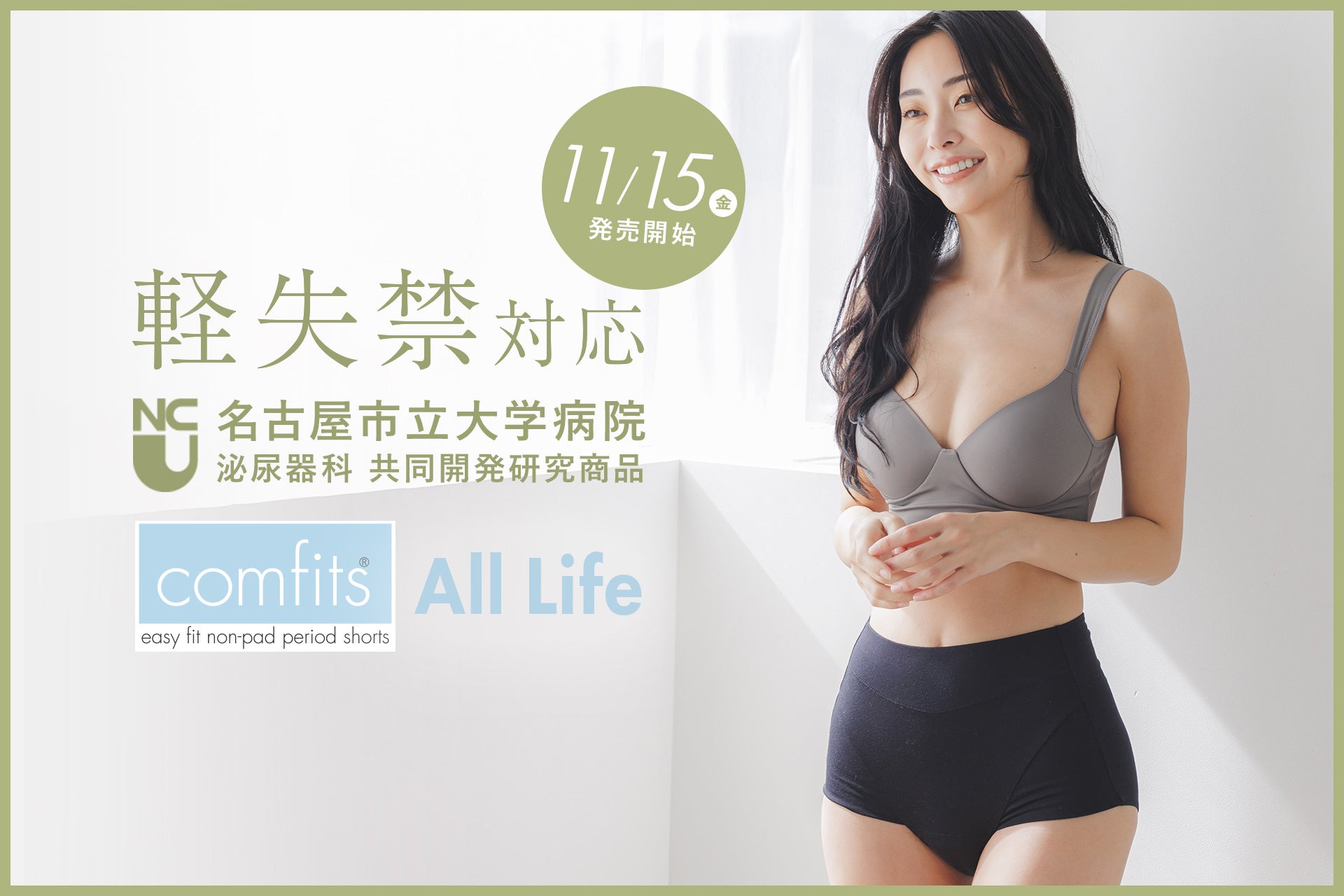 2024年11月15日、吸水ショーツのパイオニアブランド「comfits(コンフィッツ)」より、軽失禁対策に特化した新商品「All Life」がいよいよ発売されます。名古屋市立大学病院泌尿器科と共同開発されたこの製品は、快適性と吸水機能を兼ね備え、軽失禁にお悩みの方に向けた革新的なショーツです。