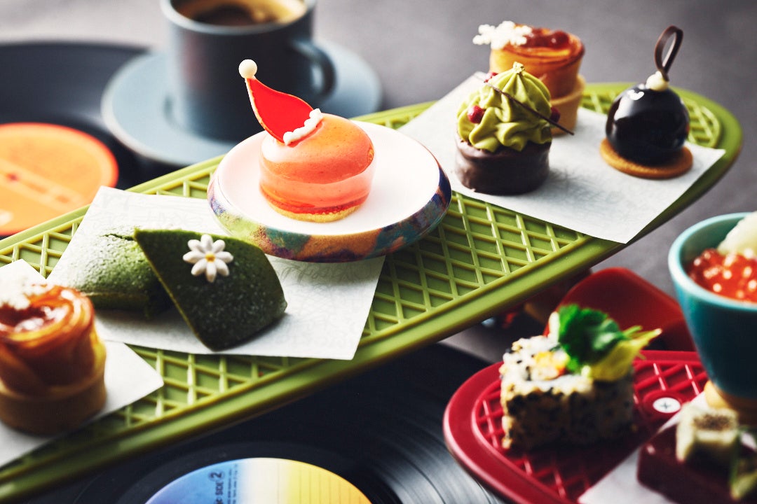 スケートボードに載せられたセイボリーやスイーツの数々が、クリスマス気分を演出するデコレーションへと変化し、アフタヌーンティーをより一層華やかにします。