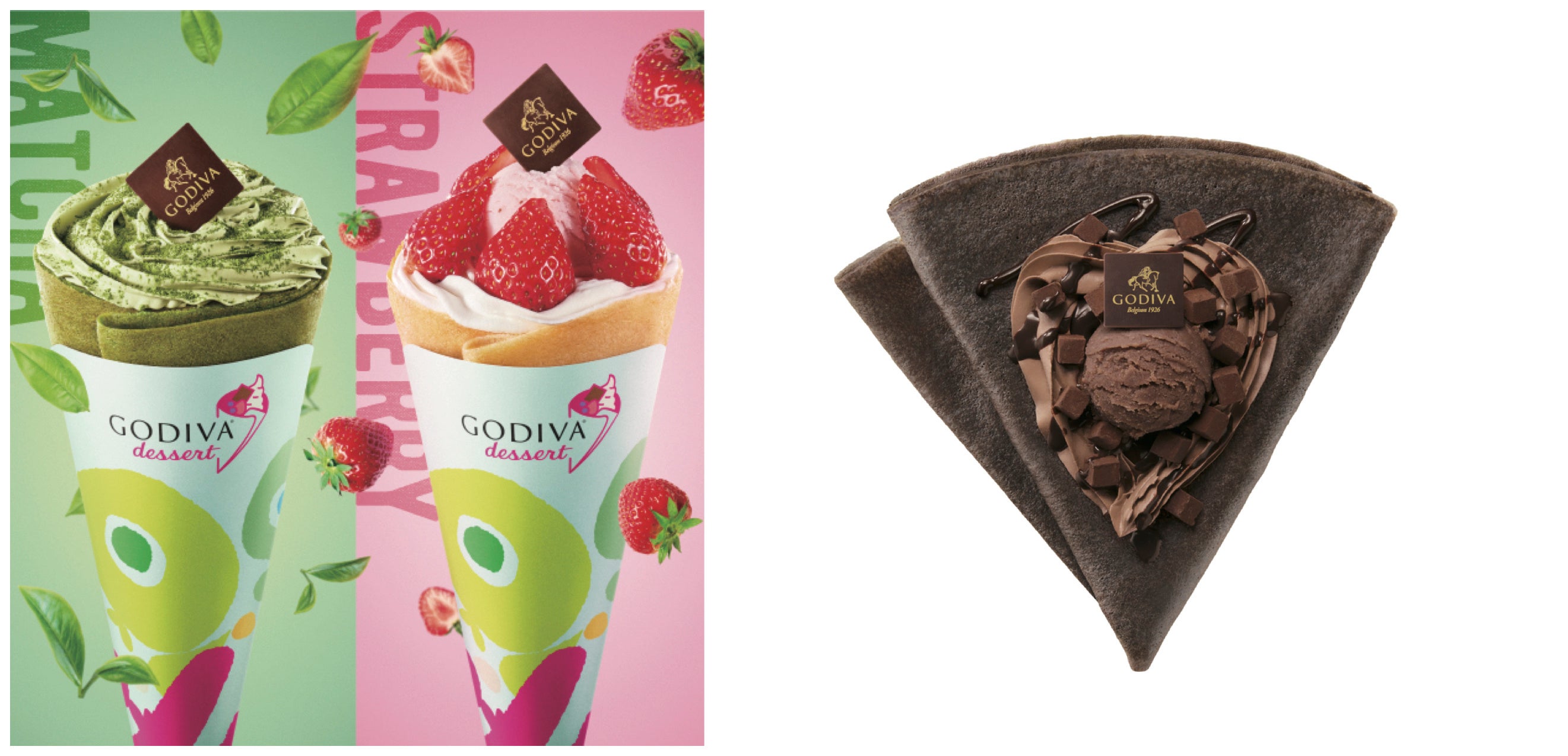 日本初「ゴディバ オリジナルクレープ」はゴディバのチョコレートを使用したプレミアム*なクレープです。ミルクやダークのチョコレート、生チョコレートなどを使用し、苺、バナナ、アイスクリームなどをトッピングしたここでしか味わえないクレープを提供します。 *一部商品を除く