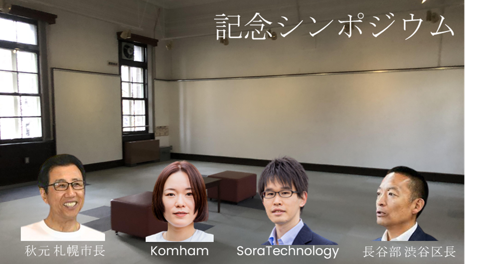 両地域の代表スタートアップとして、株式会社komham西山氏(代表取締役)、SORA Technology株式会社加藤氏(Technical Lead)、そして、秋元市長、長谷部区長が登壇し、札幌・渋谷に関わるスタートアップ支援について発表されました。