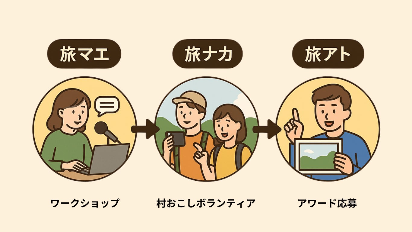 特徴は、単なるアワードではなく、「旅のプロセスすべてが学びの場」であること。現地で活動する前に地域のストーリーを知る“旅マエ”、活動中の出会いや発見を記録する“旅ナカ”、そして体験を作品として形にして伝える“旅アト”まで、一貫した体験を通じて、表現力と地域理解を深めます。