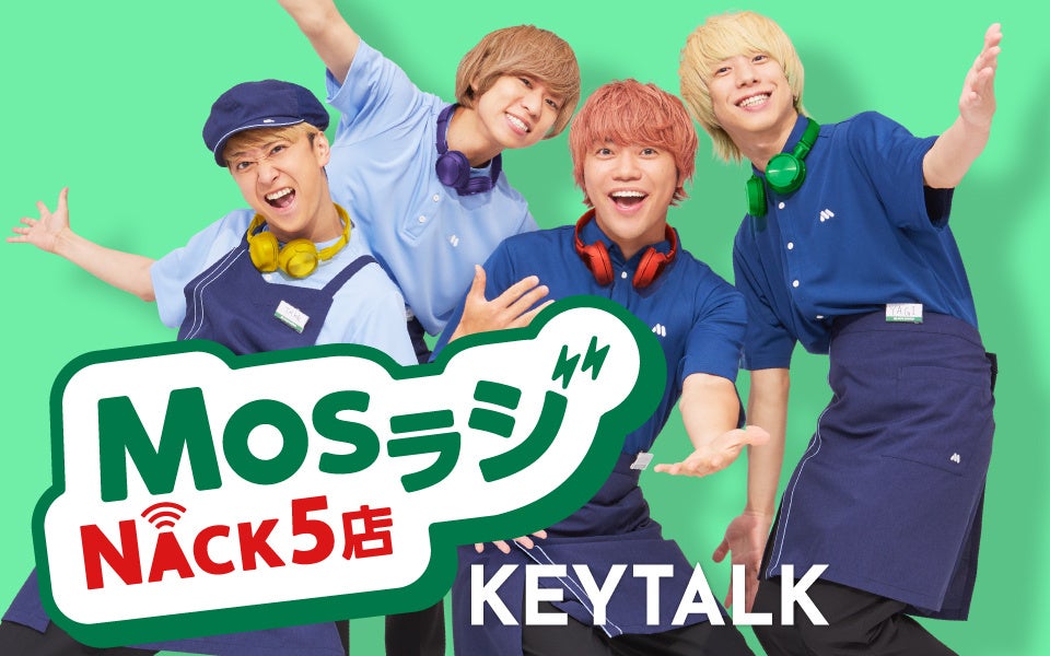 FM NACK5・毎週土曜日の午前11時から放送中の「MOSラジ NACK5店」。パーソナリティーはフェスやライブシーンで大活躍のロックバンド「KEYTALK」の寺中友将と八木優樹。ラジオの中のハンバーガーショップを舞台に、「寺中店長」と「八木副店長」がアイディアを出した商品が関東のモスバーガーで実際に販売されます。