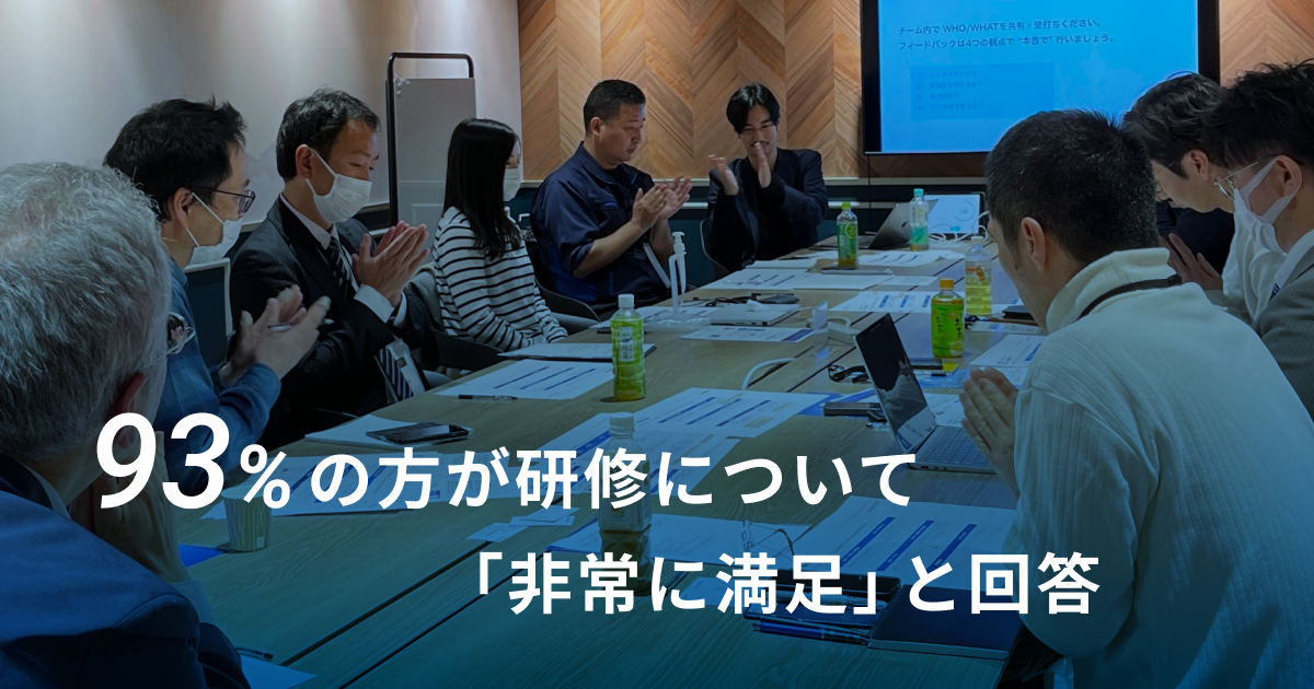 93%の方(15名中14名)に研修全体について「非常に満足」とご回答いただきました。