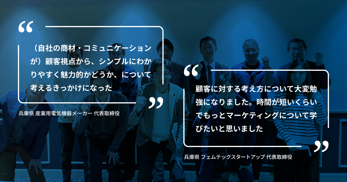 「顧客に対する考え方について大変勉強になりました。時間が短いくらいでもっとマーケティングについて学びたいと思いました」