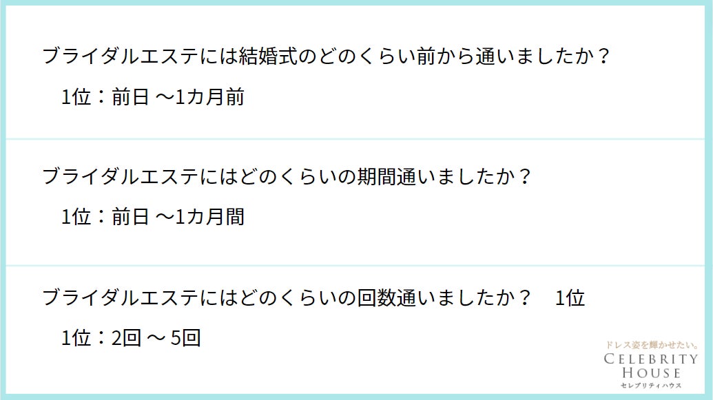 ブライダルエステ専門店「セレブリティハウス」が結婚式前の美容対策スケジュールについて徹底調査