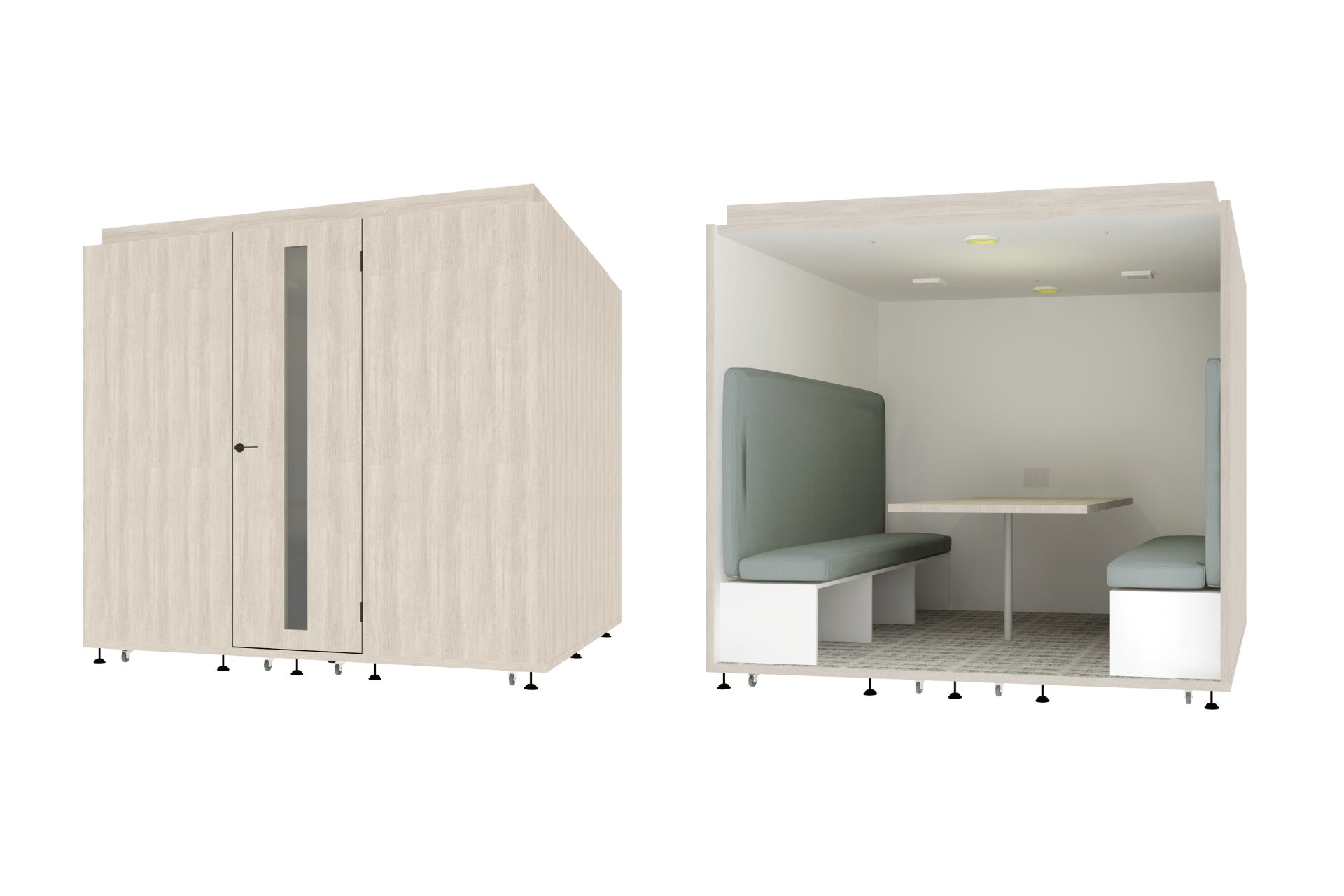 お客様の声をもとに、6人でのミーティングが可能な新型ワークブース「Pa・O Box 6人タイプ」が登場しました。
