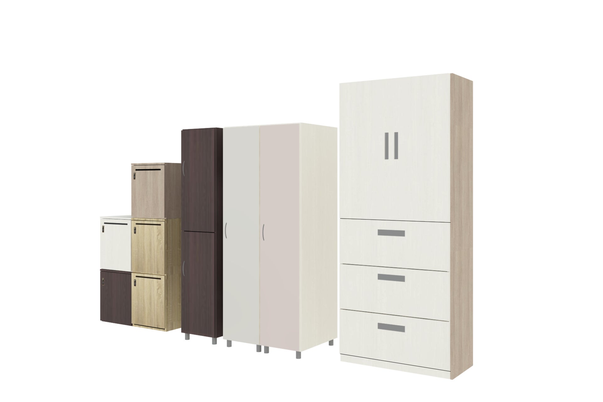 ・木目柄を基調とした書庫・ロッカーの「木製収納シリーズ」