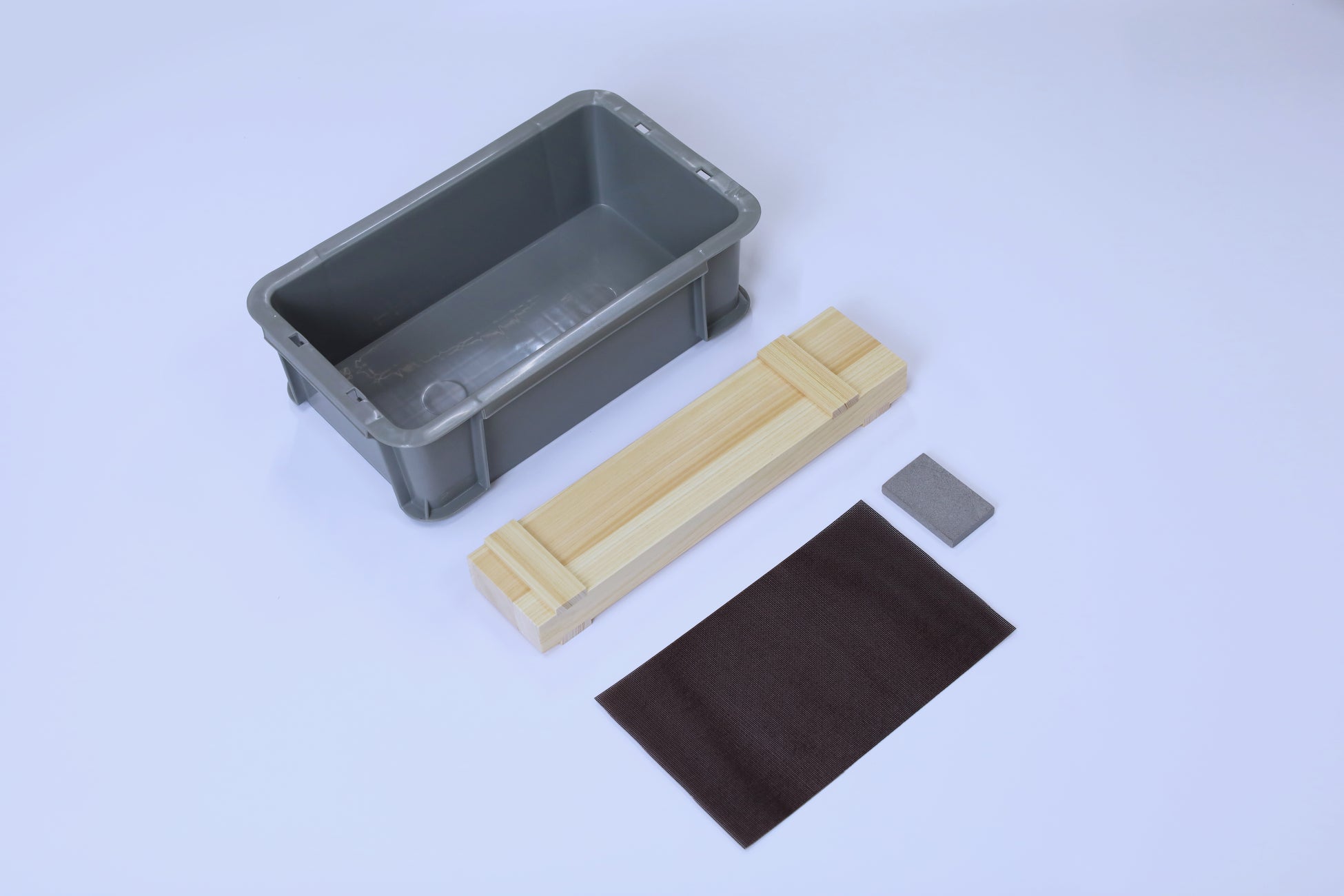 「研ぎ場セット」には、かつて当たり前とされていた「日常の中で道具を手入れしながら、長く愛着を持って使い続ける文化」への敬意と、その精神を現代の暮らしの中にも根づかせたいという想いが込められています。