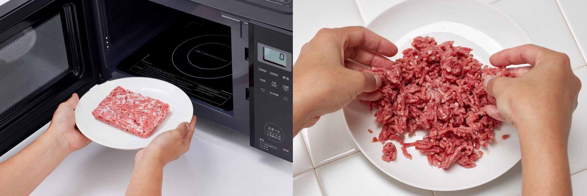 解凍メニューに応じて低出力でじっくり加熱するから食材に熱を通し過ぎず、解凍ムラができやすいひき肉や、作り置き冷凍したおかずも上手に解凍できます。