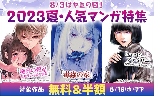 8月3日はヤミの日!!『ハッピーファミリー』,『マザーパラサイト』,『ガチ恋粘着獣』などが無料になる三社合同企画「ヤミ電書・2023夏」を開催!!