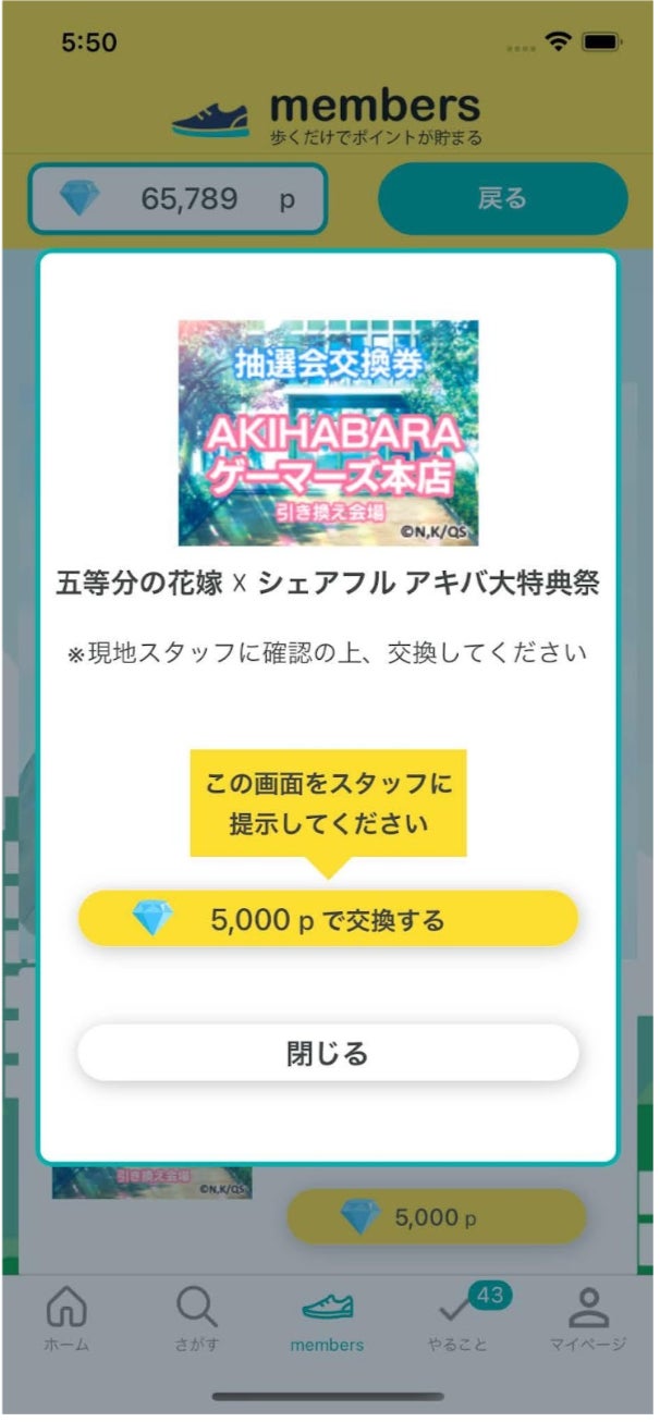 ○ メンバーズポイント5000ptにつき抽選1回しオリジナルグッズが当たります。