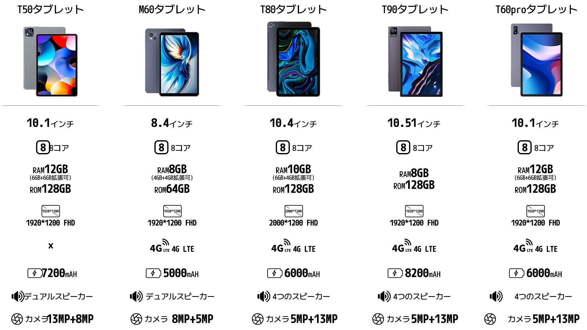 T50 / M60 / T80 / T90 / T60pro / P60 スペック