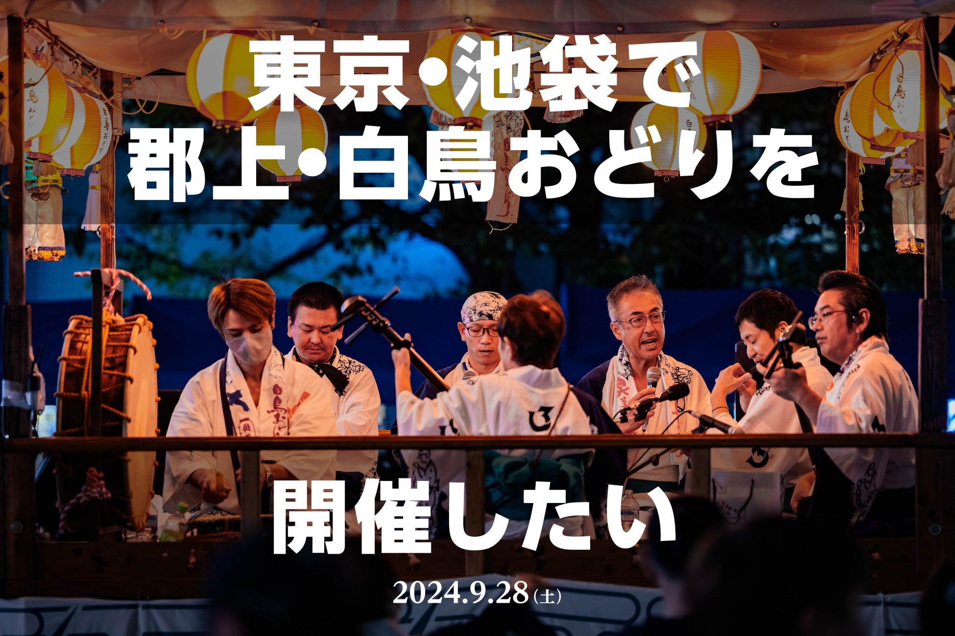 2024年9月28日(土)に豊島区中池袋公園で「白鳥おどりin池袋」を開催。今年は白鳥おどり保存会による生演奏に加え、郡上の地場産業や飲食店舗が数多く出店し、郡上・白鳥の盆踊り文化を池袋で再現します